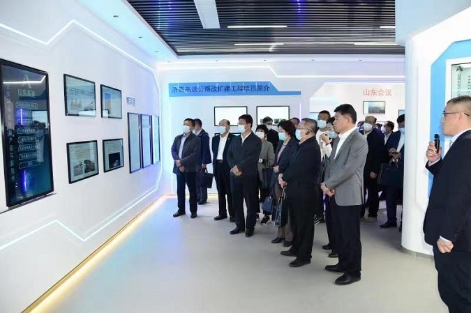 在济南东“零碳”服务区,代表委员们实地查看了全省交通运输行业深入贯彻“双碳”战略,将绿色、循环、低碳理念贯穿于高速公路设计建设的全过程,努力实现全产业、全链条绿色发展。通过参观济青高速公路改扩建工程展厅,代表委员们了解了全省高速公路规划建设情况,特别是济青高速公路改扩建项目在资源化循环利用、低碳生态环保等方面取得的一系列技术成果。