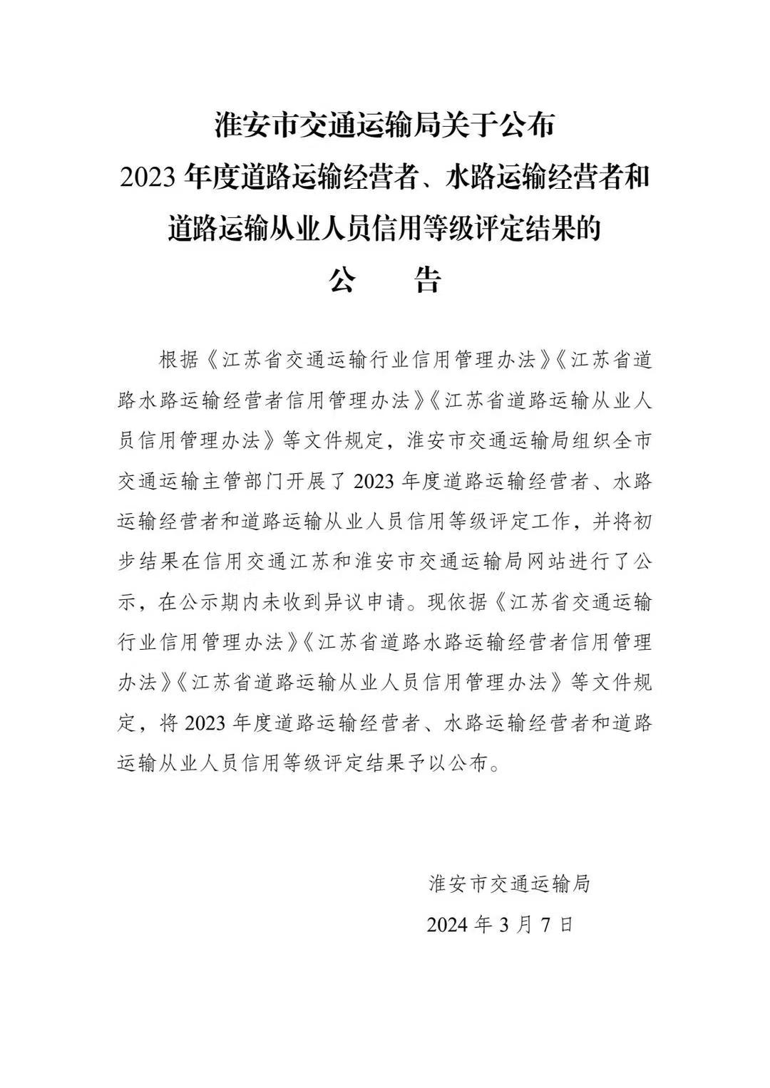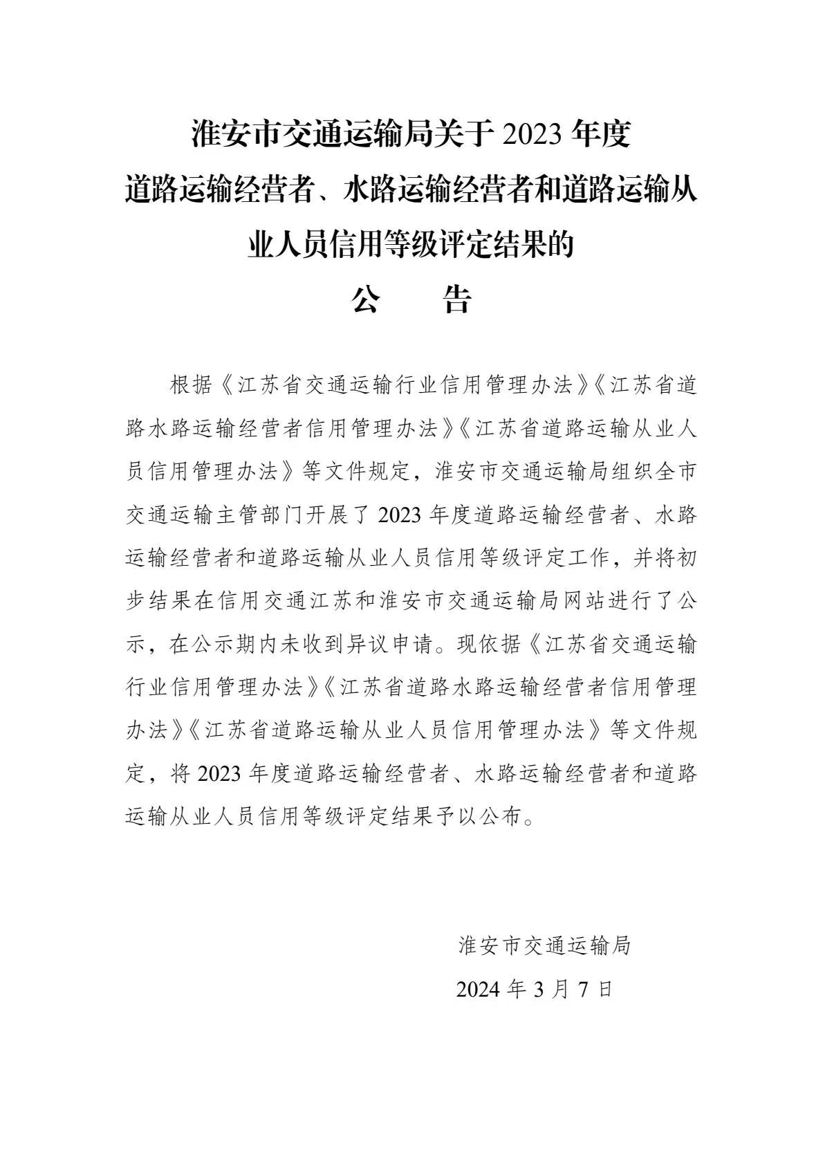 2023年度淮安市道路运输经营者信用等级评定结果公布表.pdf
