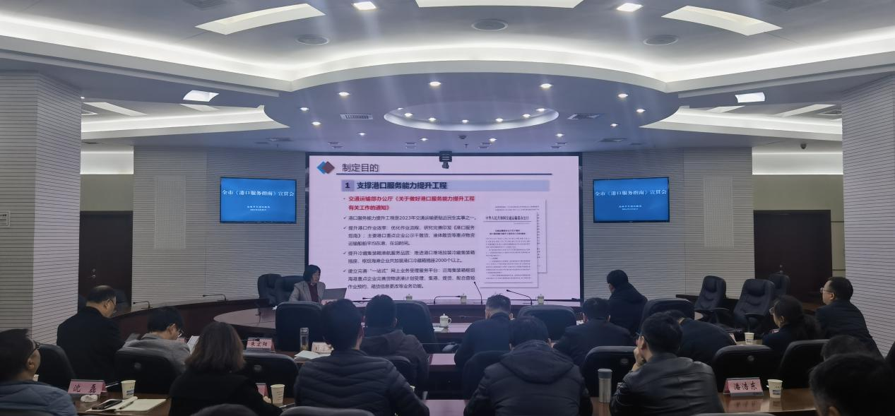 会议上,江苏万海国际物流有限公司负责人就船舶靠离泊、进出港装卸作业、港口统计等管理工作进行经验交流。港务管理处相关负责人员从适用范围、服务流程、服务要求三方面对《港口服务指南》进行了详细解读,并就港口码头安全监管、污染防治、整治提升、数据统计等方面进行了工作要求。