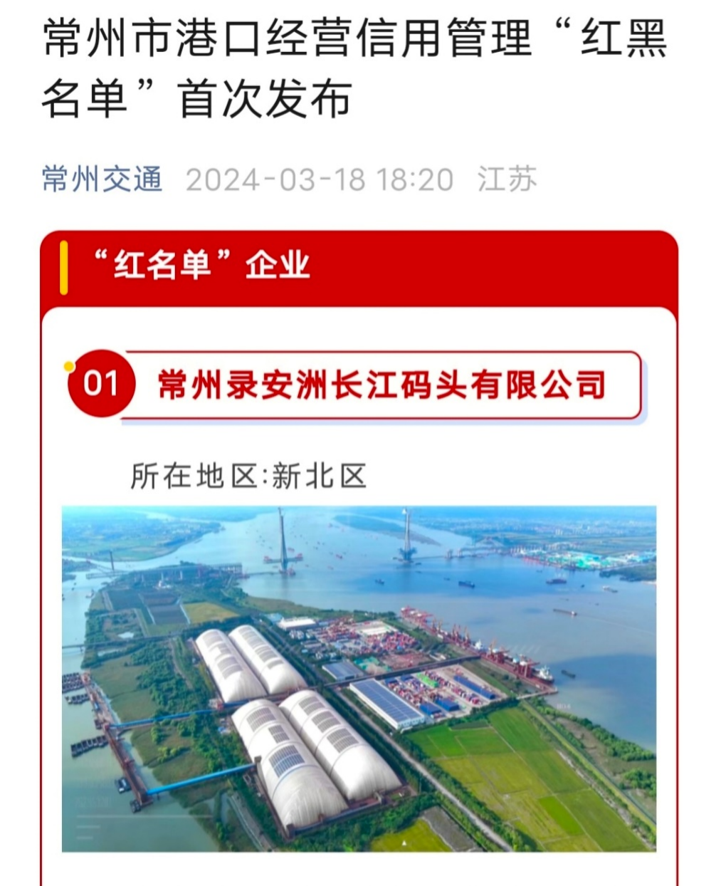近日,常州市交通运输局印发《常州市港口经营信用管理工作方案》,高标准推进港口行业信用体系建设,全面完成2023年港口经营信用评定考核工作,并首次公布全市港口经营信用管理“红黑名单”。