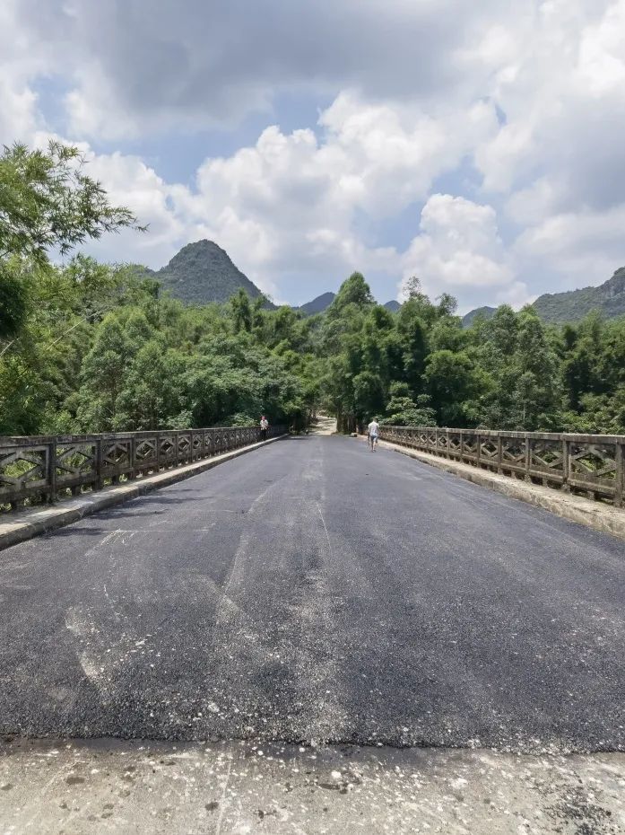 为确保修整工作的顺利进行,该养护中心提前进行实地调研,并投入乡村振兴专项资金对天马桥损坏桥面进行修整。在修整现场,该养护中心工作人员与西边村干部配合装料车辆、压路机、洒布机等机械,清理桥面的坑洼处和沙土碎石、喷洒乳化沥青、摊平沥青物料......经过大家的共同努力,完成了500平方米的沥青铺补工作,桥面焕然一新。