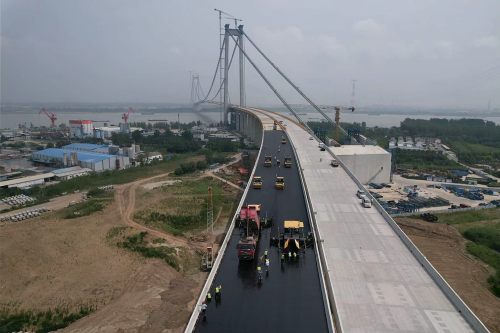 6月17日,龙潭长江大桥南引桥桥面沥青面层首件铺装完成,大桥桥面沥青摊铺施工正式拉开序幕。