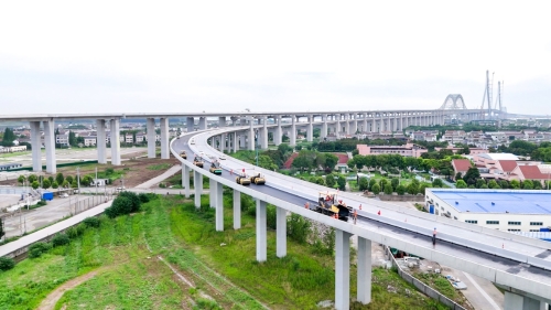 目前,常泰长江大桥上层高速公路环氧沥青路面已完成公铁合建段试铺,为后续大面积铺装提供了技术支撑和施工经验。全桥钢桥面将利用连续高温晴好天气持续摊铺,计划于今年10月完成。目前,大桥附属工程施工也在同步进行,全桥预计2025年上半年建成。(省交建局)