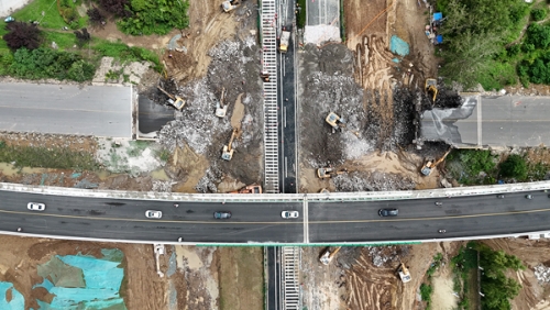 7月18日19时,历经13小时紧张作业,长深高速公路连云港至淮安段扩建工程顺利完成9座支线上跨桥梁的集中安装拆除施工,提前开放交通。