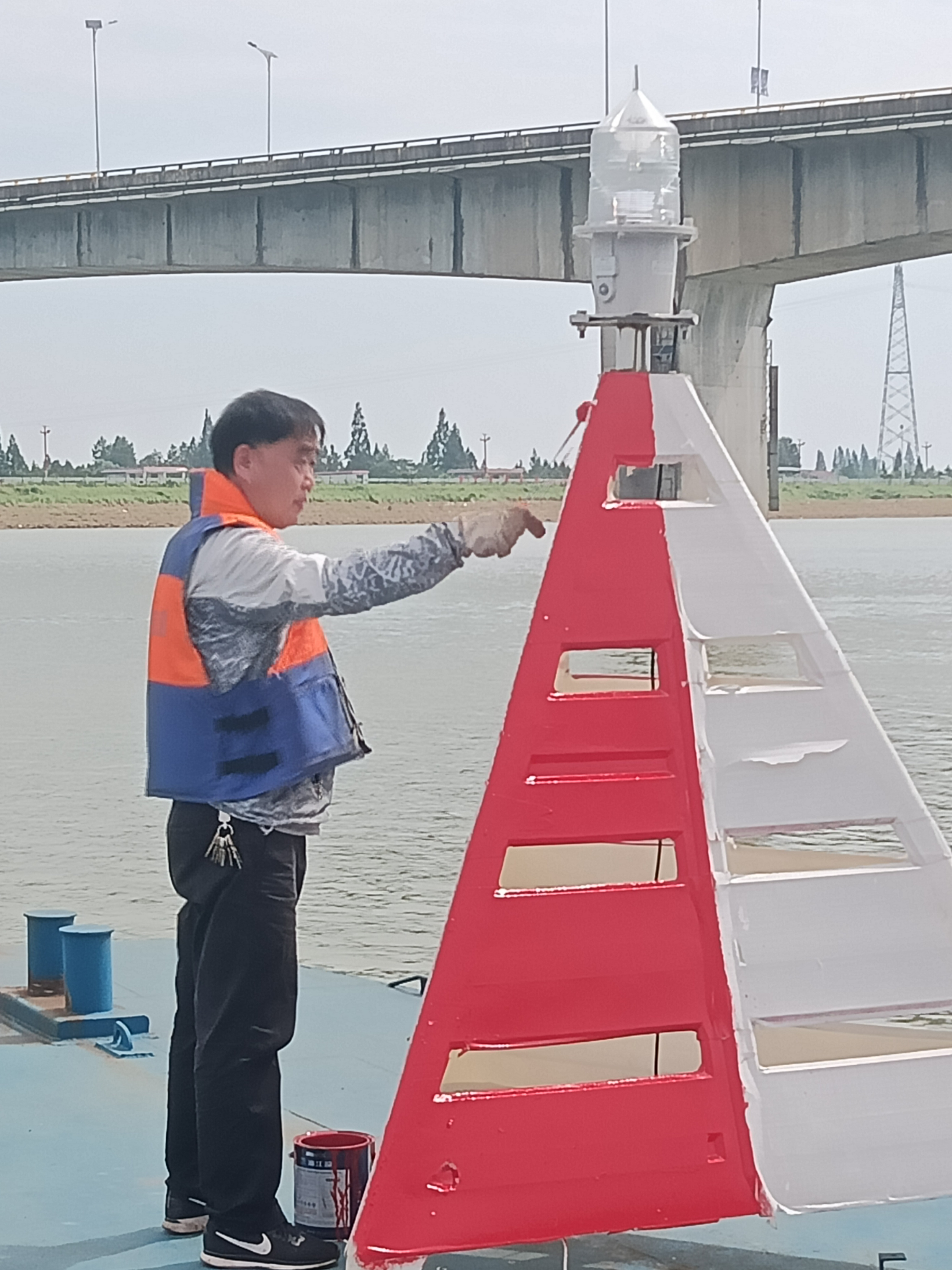 该处及时对航标进行刷漆,确保航标颜色鲜明、灯光明亮、标位正确,切实提高航标助航效能,保障航行安全。