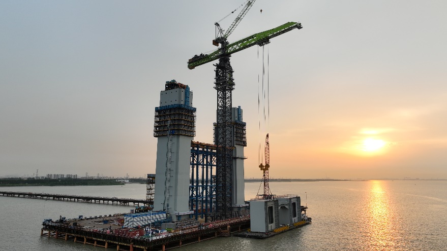 近日,张靖皋长江大桥南航道桥南主塔首节横梁精准吊装完成,世界最高悬索桥索塔正式进入横梁吊装阶段。