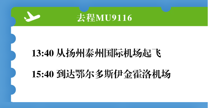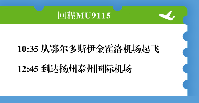 8月10日,扬泰机场迎来了扬(泰)州—鄂尔多斯航线首航,该航线由东方航空执飞,运营班期为每周一、周三、周五、周日,航行时间约2小时。