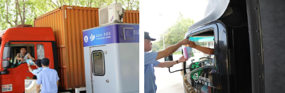 在高速公路收费口为货车司机们递上防暑用品,向奋战在物流运输、民生保障一线的货车司机群体们传递“一路辛苦,感谢有你”的温情敬意。