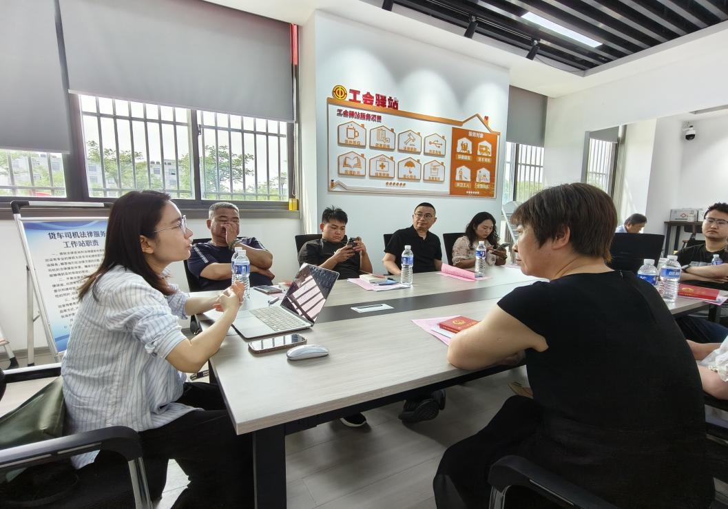5月20日,江都区交通运输局系统工会联合局政策法规科、货运执法中队在区货车司机党群服务中心开展“以法护“新” 共创和谐,五一劳动法治宣传服务月”活动。区货车司机法律援助团工作人员和公益律师代表参加,为10余名货车司机代表送上“法治大餐”,以专业服务筑牢劳动者权益“防护网”。