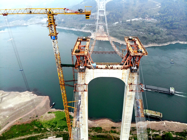 合璧津高速油溪长江大桥主跨760米,主塔高172.5米,相当于60层楼高。主缆架设在大桥施工过程中起着承前启后的作用,它是桥梁的下部结构施工转为上部结构施工的一个重要环节。“基准索”的成功牵引架设,标志着油溪长江大桥全部转为上部结构施工。