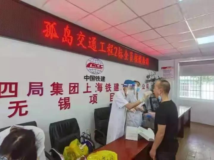 8月4日,在无锡市港航事业发展中心积极协调、卫健部门大力支持下,无锡市卫健部门(华清医院)医务人员到各工地一线,对工程建设全体管理人员和全体劳务人员进行新冠病毒核酸检测。检测现场,参检人员均佩戴好口罩,有序排队并保持人与人之间一定的间隔。检测的工作人员按照检测流程,进行信息核对、体温测量、样本采集、样品分装等工序,所有采集的样本将送至医院检验中心进行检测。