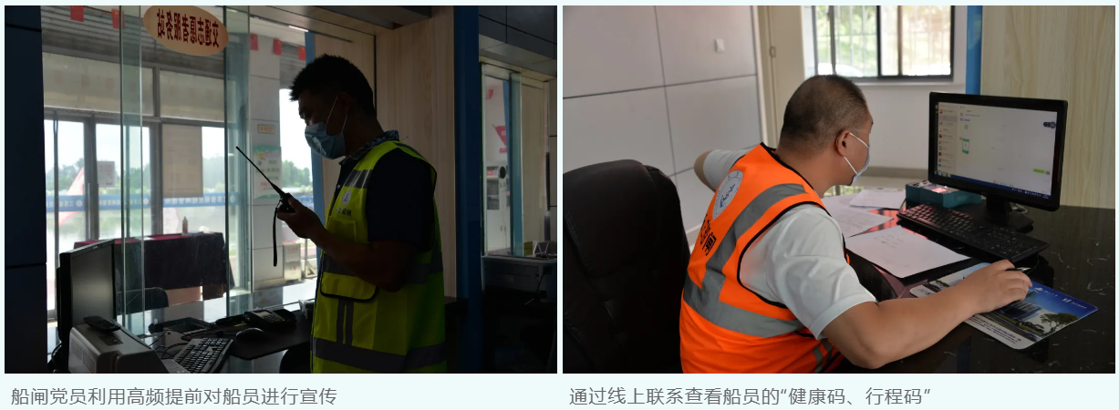 面对当前防疫情势,江苏省杨庄船闸管理所迅速应对,由党员干部带头,与职工协同作战,冲在第一线、干在第一线,把党旗插到防疫防汛工作的最前沿,充分将党史学习教育与“我为群众办实事”实践活动结合,扎实开展“两在两同”行动,积极落实各项防疫措施,做到值守全天候、排查全方位、监测全时段,确保特殊时期船闸运行安全,为重要民生企业正常运行提供有力保障。