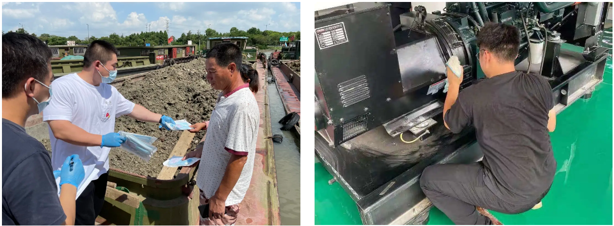 按照所内预先安排,组建宣传小组,由戎定贤副所长担任组长,组内共同学习《前黄船闸新版水上ETC船员操作指南》,在大家都掌握指南后,小组依次上门拜访相关船舶企业,并免费赠送医用口罩和操作手册,向企业负责人介绍免费安装及操作优势,并积极推广单位文化。由于部分企业负责人是常州本地人且年纪稍大,新员工沟通存在困难,戎定贤副所长便负责操着一口地道的常州话与负责人沟通,还架起了船闸与企业、船方间良性互动的桥梁。“我是外地人,也是新来的,对方一开口就是方言夹着生硬的普通话,我心里咯噔一下,生怕影响宣传效果,没想到戎所长一来很快就拉近了与对方的距离,看得出来与企业负责人聊得很愉快。”新入职的刘旭同志露出崇拜的表情。