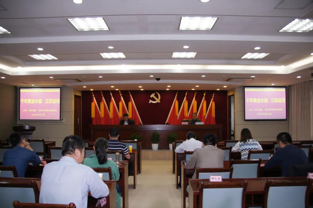 10月15日下午,省交通运输厅港航中心组织开展2021年第三期“港航大讲堂” 暨党史学习教育活动。邀请扬州大学中国大运河研究院特约研究员、副教授、硕士生导师刘怀玉教授在中心作题为《千年黄金水道:江苏运河》专题讲座。省交通运输厅港航中心副主任杨栋主持讲座,中心全体干部职工参加讲座。