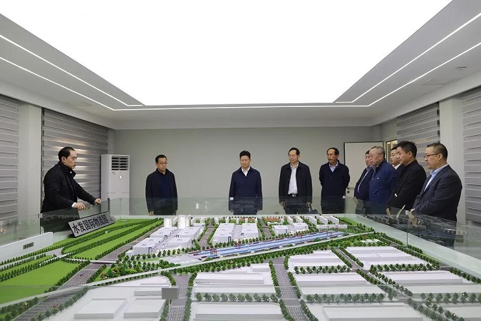 孟庆斌一行参观了水发国际物流园项目建设指挥中心展厅,详细了解园区项目建设、招商运营、发展规划等情况,并对项目取得成绩表示祝贺。